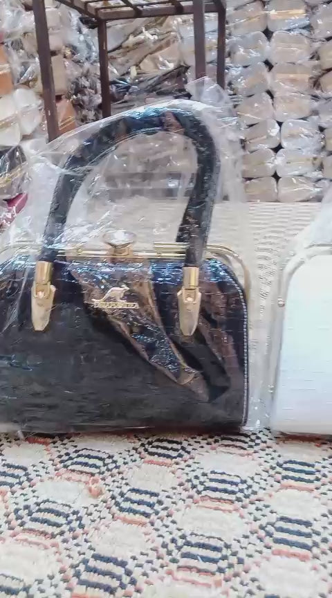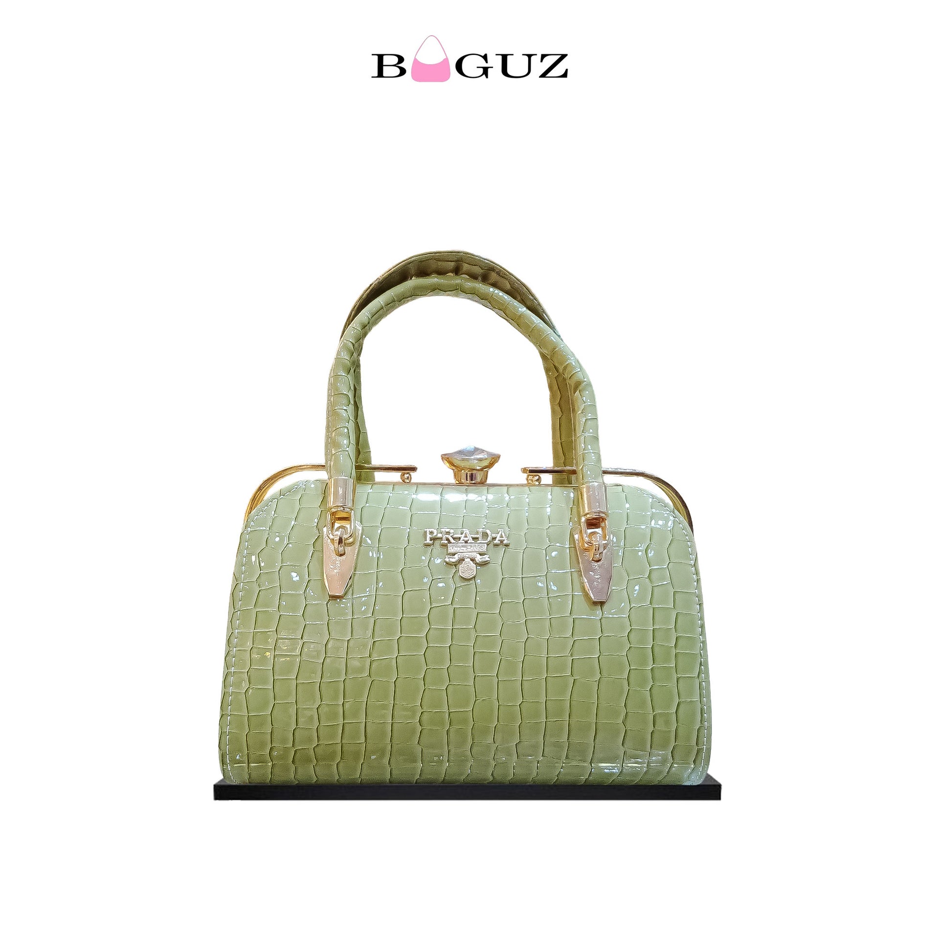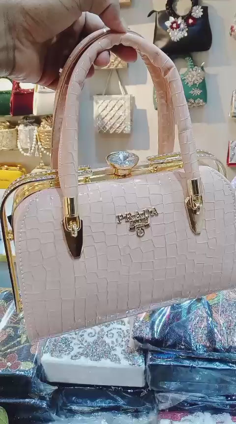 Baby Pink Croc-Textured Diamond Lock Handbag